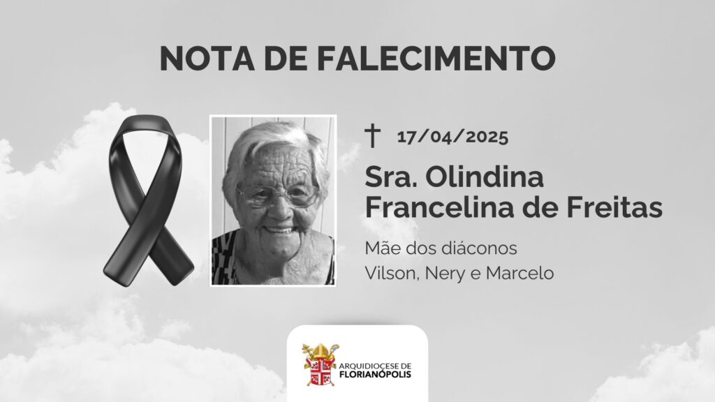 Com pesar, a Arquidiocese de Florianópolis comunica o falecimento da mãe dos diáconos Vilson Alfredo de Freitas, Nery Alfredo de Freitas e Marcelo Alfredo de Freitas, Sra. Olindina Francelina de Freitas, aos 99 anos, ocorrido no dia de ontem, 17 de abril de 2025, em sua residência, na cidade de Santo Amaro da Imperatriz. O […]