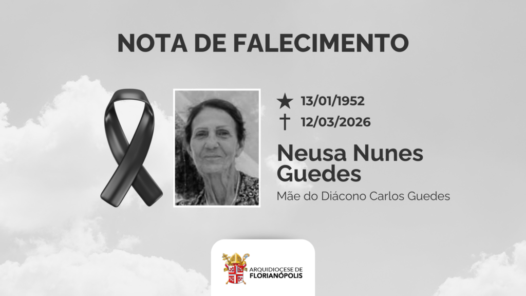 Com pesar, a Arquidiocese de Florianópolis comunica o falecimento da Sra. Neusa Nunes Guedes, mãe do Diác. Carlos Guedes, nesta quinta-feira (12/03), aos 74 anos. O velório acontece na capela 3 do Cemitério Municipal de Biguaçu, no bairro Fundos, Biguaçu. O sepultamento será às 16h. A Arquidiocese, na esperança da vida eterna, reza pelo descanso […]