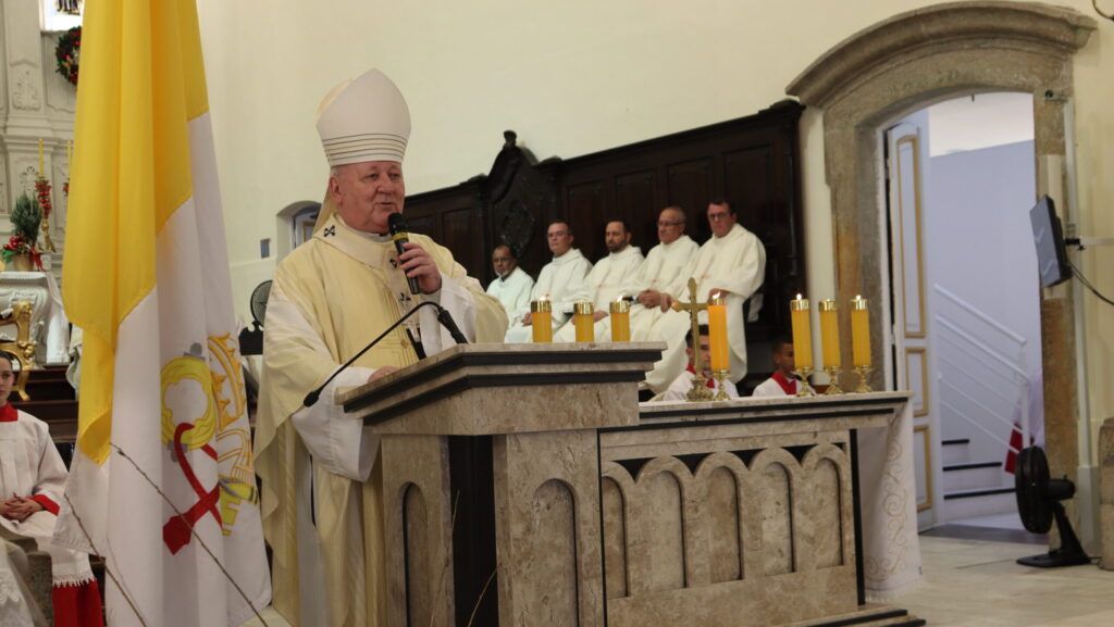 Na noite do dia 31 de dezembro de 2025, a Catedral Metropolitana acolheu fiéis para a Missa de Ação de Graças pelo encerramento do ano. A celebração foi presidida pelo Arcebispo Metropolitano, Dom Wilson Tadeu Jönck, e concelebrada pelo pároco da Catedral, Pe. David Coelho, reunindo a comunidade em um momento de oração, gratidão e […]