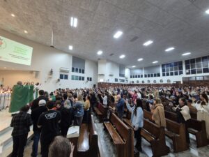 No último domingo, 19 de outubro, educadores da Arquidiocese de Florianópolis se reuniram na Paróquia Santíssima Trindade para celebrar a Missa Arquidiocesana pelos Educadores, presidida por Dom Onécimo Alberton, bispo auxiliar. A celebração, marcada por fé e gratidão, contou com a acolhida fraterna do Frei Marcus Augusto Garcia Miranda, OFMCap, vigário paroquial, e a presença do Pe. Eduardo Roberto Severino, SJ, diretor-geral do Colégio Catarinense.
