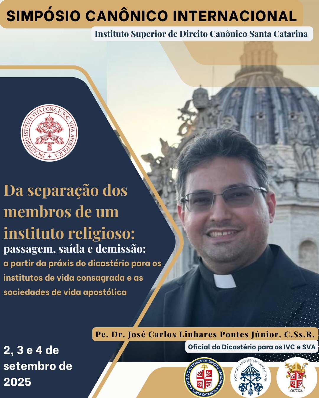 O Instituto Superior de Direito Canônico Santa Catarina (ISDCSC) está com inscrições abertas para o seu Simpósio Canônico Internacional. O evento acontece entre os dias 2 e 4 de setembro de 2025, no auditório da sede do ISDCSC, em Florianópolis, com o tema: “Da separação dos membro de um instituto religioso: passagem, saída e demissão: a partir da práxis do dicastério para os institutos de vida consagrada e sociedades de vida apóstolica”.