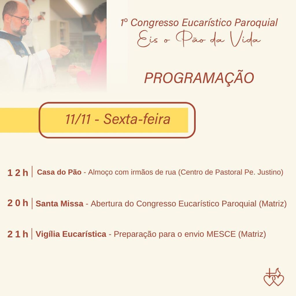 20h – Santa Missa – Abertura do Congresso Eucarístico Paroquial (Matriz).