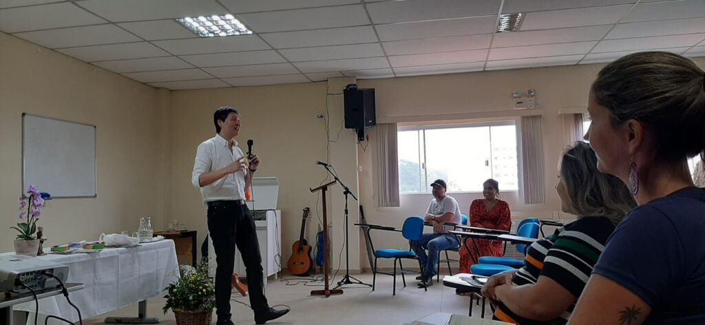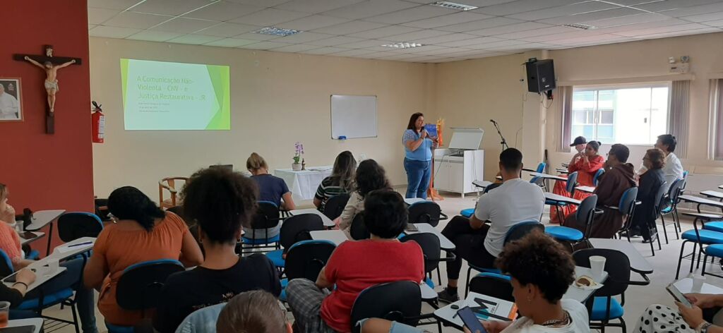 Na segunda abordagem do dia, o juiz Dr. Takaschima palestrou sobre a comunicação não violenta e a justiça restaurativa. O magistrado destacou a necessidade das pessoas se comunicarem a partir do autoconhecimento, da capacidade de se verem com suas emoções, sentimentos e necessidades e como tomar decisões assertivas.