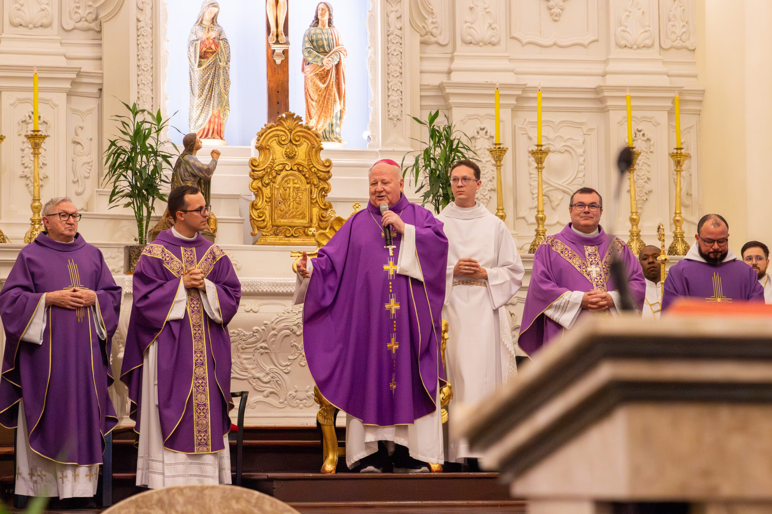 A celebração contou com a presença de padres e formadores dos seminários da Arquidiocese de Florianópolis e das Dioceses de Blumenau e Tubarão, além de nosso pároco, vigário, religiosos e religiosas, benfeitores, representantes de movimentos vocacionais e grande número de fiéis.